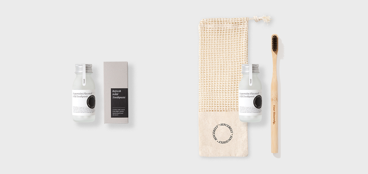 신시어리의 고체 치약에 브랜드를 멋지게 담아 선물해보세요. 지구와 받는 사람을 고려한 진심 가득한 선물이라 생각합니다.