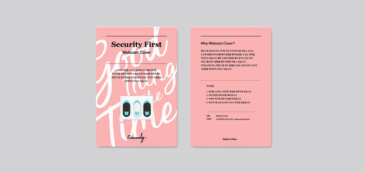 카드홀더 디자인 - 웹캠 커버의 패키지는 투명한 OPP을 사용하기 때문에 기업 브랜드는 카드홀더에 표현하게 됩니다.