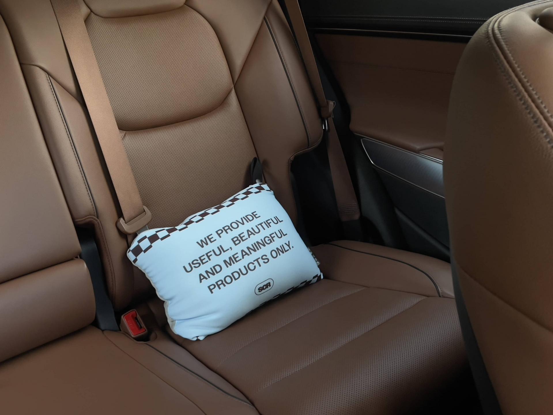보통 여행이 끝나고 나면 여행용 목베개는 옷장 깊숙이 넣어 보관하게 되죠. 이번 굿즈는 쿠션 형태로 바꿔 일상에서도 사용할 수 있다는 점이 가장 만족스러웠습니다. 여행을 갈 때에는 목베개로, 평소에는 차 안의 인테리어 효과를 주는 쿠션으로 사용할 수 있고요. 아름다운 신시어리 그래픽 덕분에 차에 탄 지인이 어디 브랜드 제품이냐고 물어보기도 했어요.