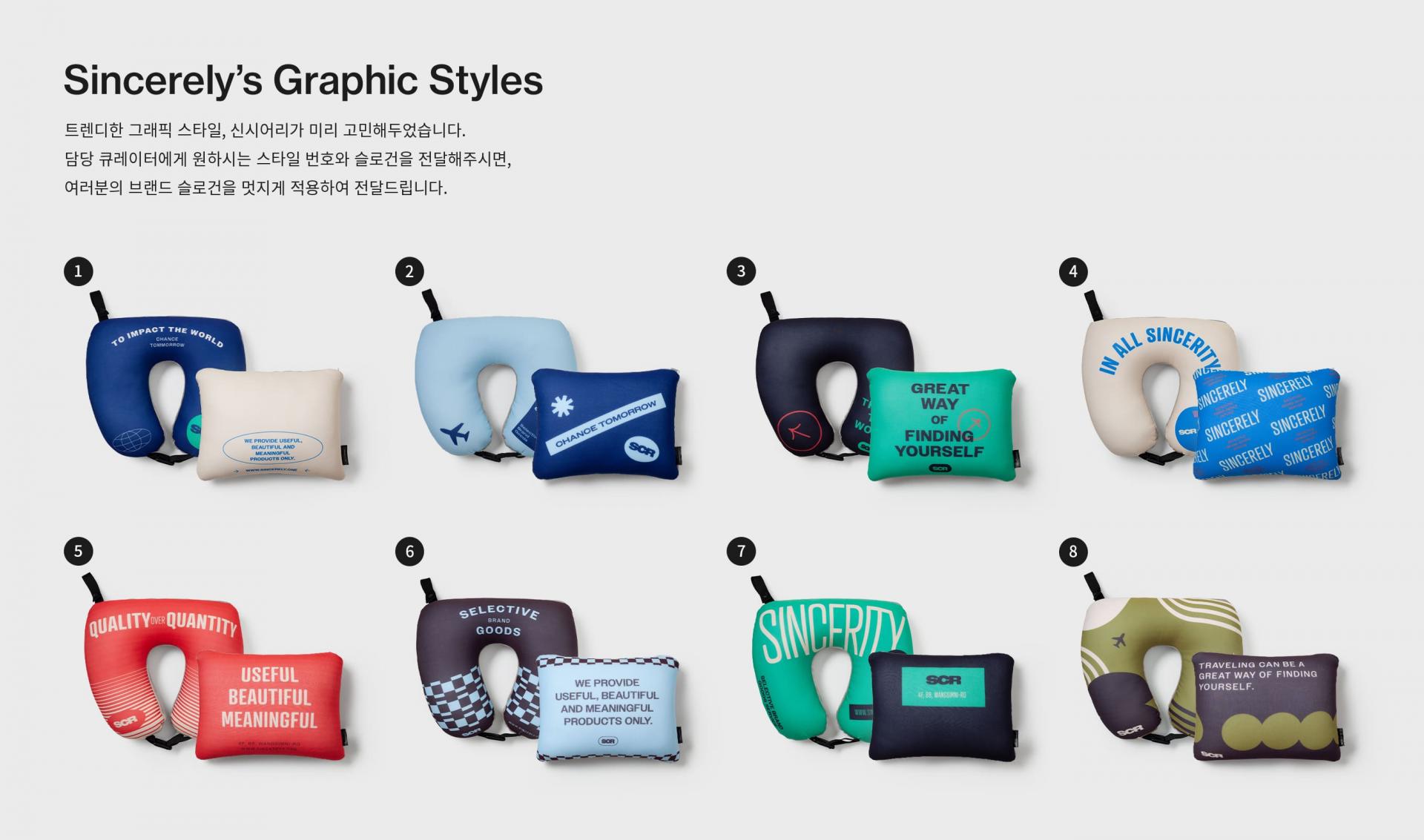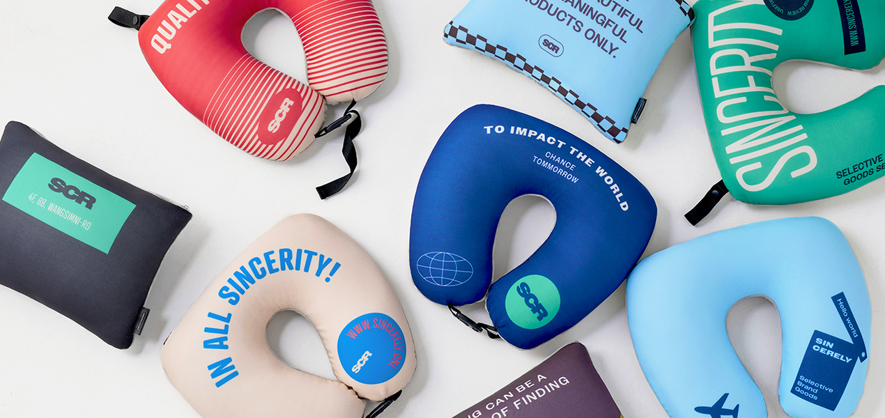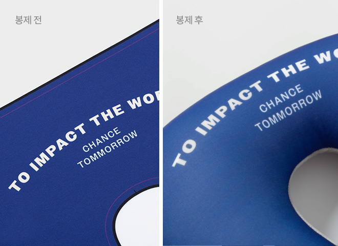 브랜드 굿즈라면 꼭 필요한 것, 바로 넓은 브랜딩 영역입니다. 목베개와 쿠션 각각 한쪽 면에 여러분의 브랜드 그래픽을 자유롭게 담아보세요. 여행의 시작부터 집으로 돌아오는 길까지 여러분의 브랜드 그래픽이 함께할 거예요.
