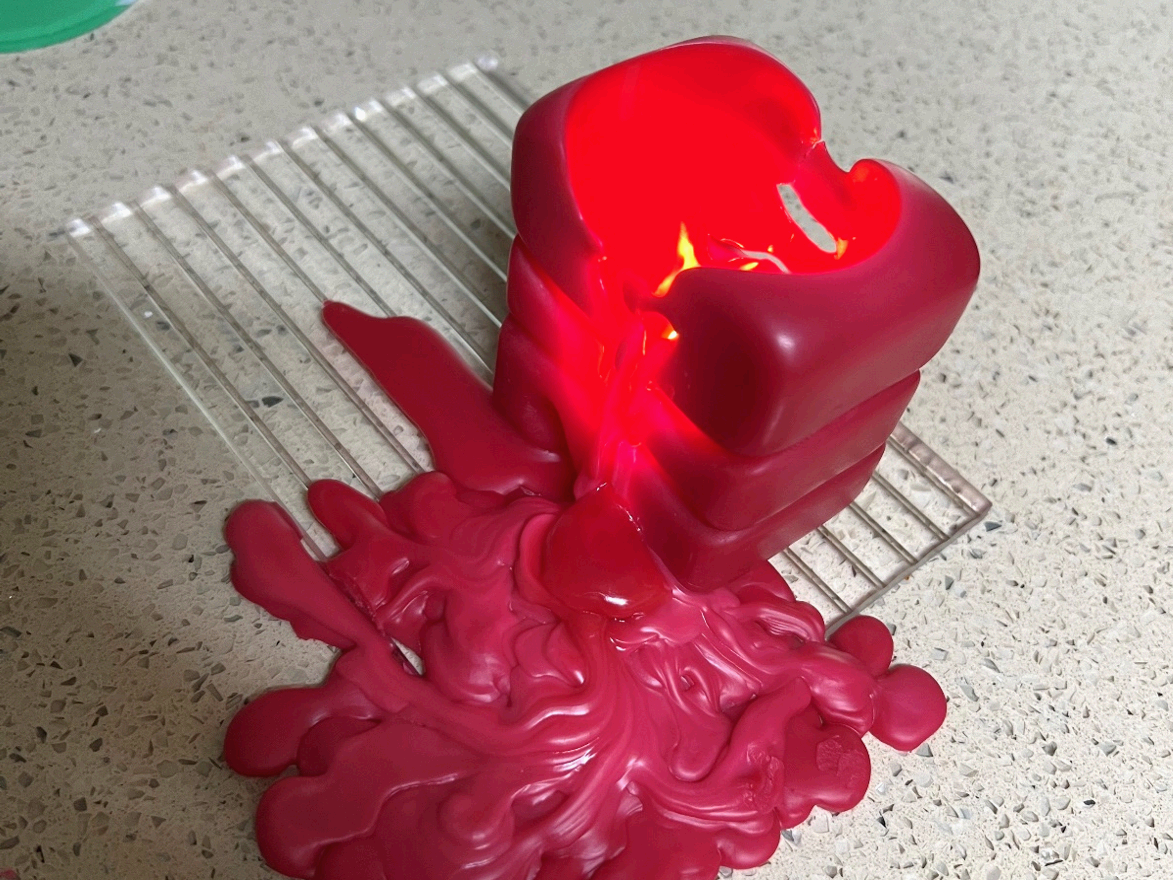 - 감상용으로 좋은 오브제 캔들이지만 초 본연의 기능에 따라 불을 붙여보았습니다. 모두 태우는 데에 5시간 정도 걸렸는데, 강렬한 색의 촛농이 흘러내리기 때문에 별도의 받침대를 활용하시는 것을 권장드립니다.