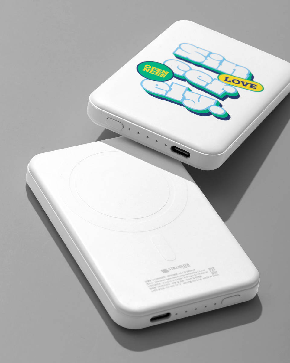꼭 필요한 기능만 남기고 모두 덜어낸 미니멀함 또한 검증된 인기의 이유입니다. All White의 보조배터리 전면에 브랜드를 자유롭게 표현해보세요. 충전하는 내내 받는 분의 가장 가까이에서 여러분의 브랜드가 함께할 거예요.