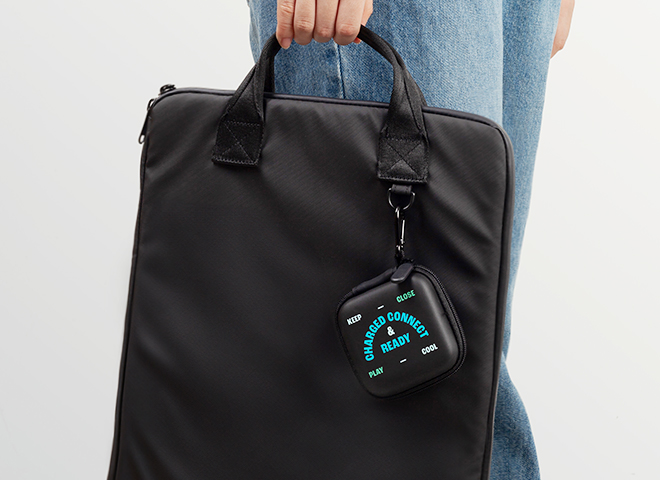 테크 미니 파우치는 MZ 세대 트렌디 아이템처럼 백팩에 다는 무선 이어폰 파우치로 쓰기에 유용합니다. 미니 파우치 안에 에어팟, USB 등 잃어버리기 쉬운 작은 모바일 액세서리를 넣고 다니면 보관할 때도, 꺼내어 쓸 때에도 편리하지요. 길을 걷다 갑자기 에어팟으로 노래를 듣고 싶을 때, 멈춰서서 가방 속을 들출 필요 없이 가방 고리에 달아둔 미니 파우치에서 간편하게 꺼내면 되니까요.