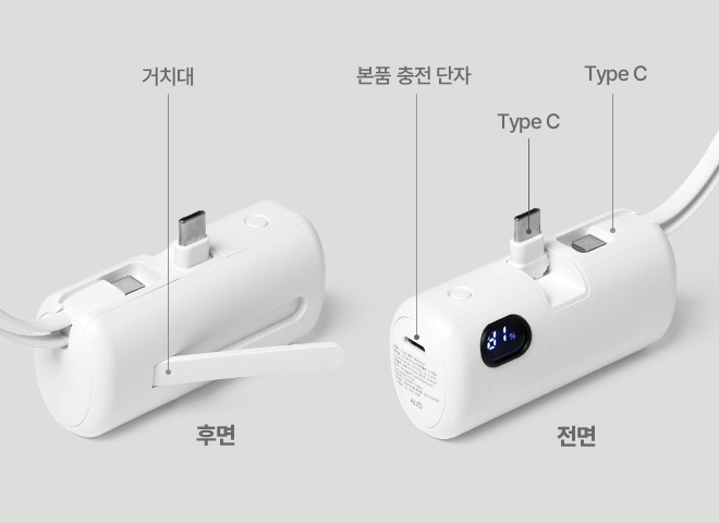 C타입 충전 단자가 도킹형과 내장 케이블, 2가지로 제공되어 2개의 기기를 동시에 충전할 수 있죠. 후면의 거치대로는 스마트폰을 충전 중에도 편리하게 세워두고 사용해보세요.