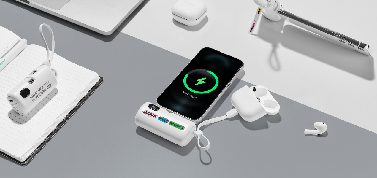 요즘 직장인들에게 가장 사랑받는 굿즈, 충전이 필요한 어디서든 우리의 곁을 지키는 도킹형 보조배터리입니다. 휴대성은 물론, 충전 속도까지 빠른 도킹형 보조배터리가 있다면 어떨까요.