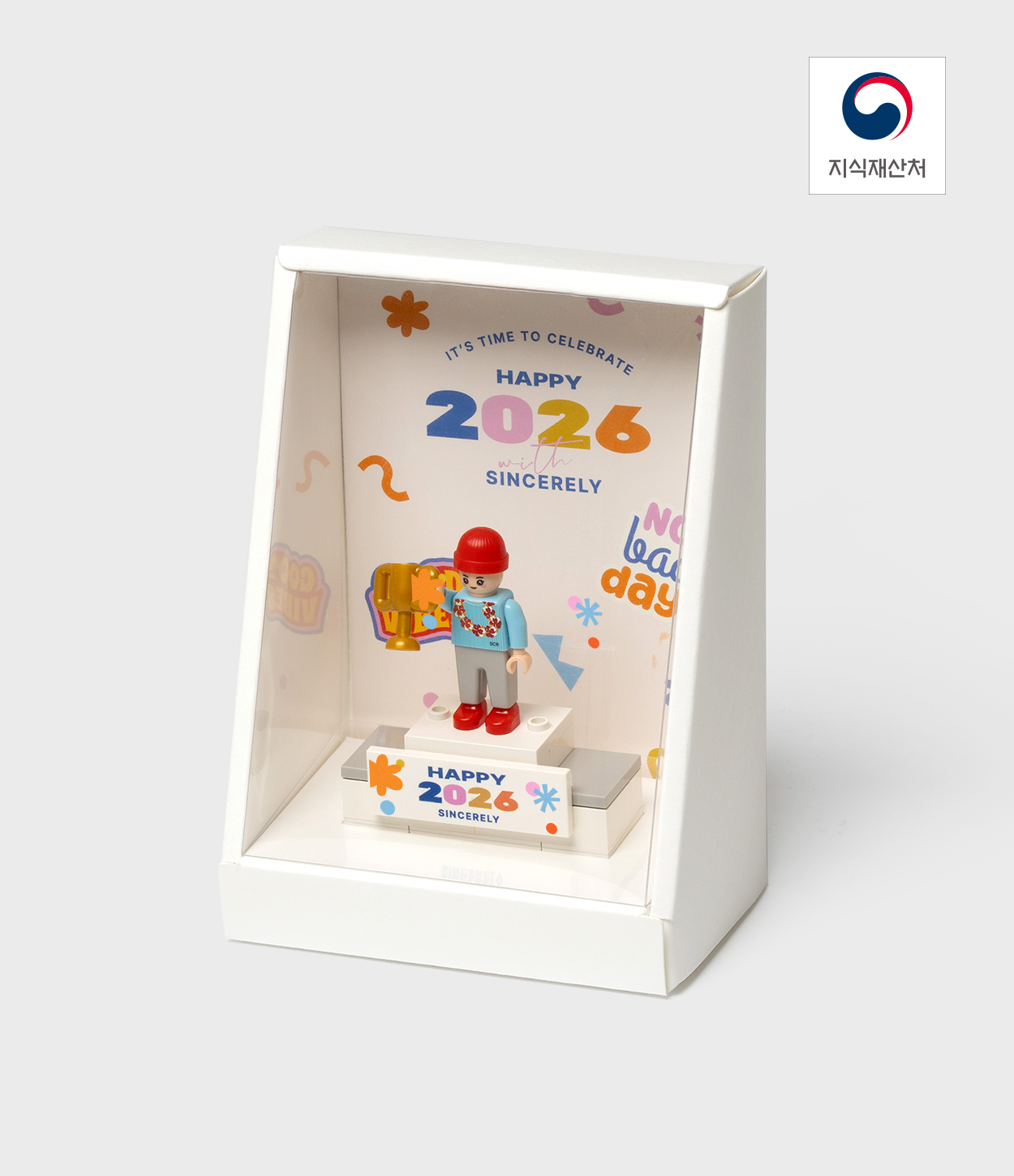 - 트로피는 결국 진열할 때 완성되는 것이기에,트로피까지 함께 진열하고 싶은 패키지를 고민하게 되었습니다. 투명한 PET로 트로피는 물론, 메시지가 담긴 배경지까지 보이는 박스를 완성했습니다.