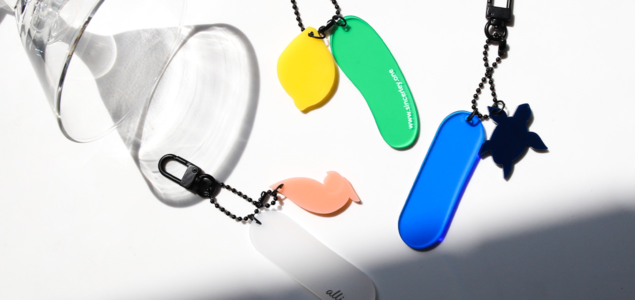 브랜드만의 Look&Feel을 한층 더 보여주길 원하신다면 아크릴 참에 풀컬러로 인쇄해보세요. 로고, 슬로건 혹은 일러스트를 인쇄하면 세련된 키링이 완성될 거예요.
