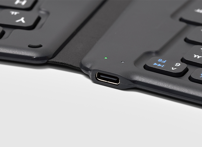 가볍게 들고 다니세요. - 무게는 174g, 두께는 0.6mm 입니다. 휴대폰보다 얇고 가벼운 키보드를 반으로 접으면 휴대폰만큼 컴팩트한 사이즈가 됩니다.