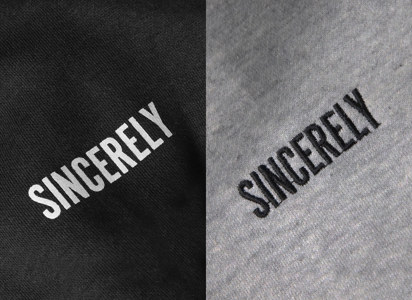 브랜드의 LOOK & FEEL에 맞게 인쇄 방식도 선택이 가능합니다. 입체감 있는 나염 인쇄와 섬세한 느낌의 자수 인쇄 중 고를 수 있습니다.