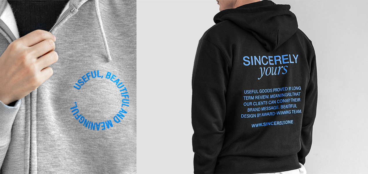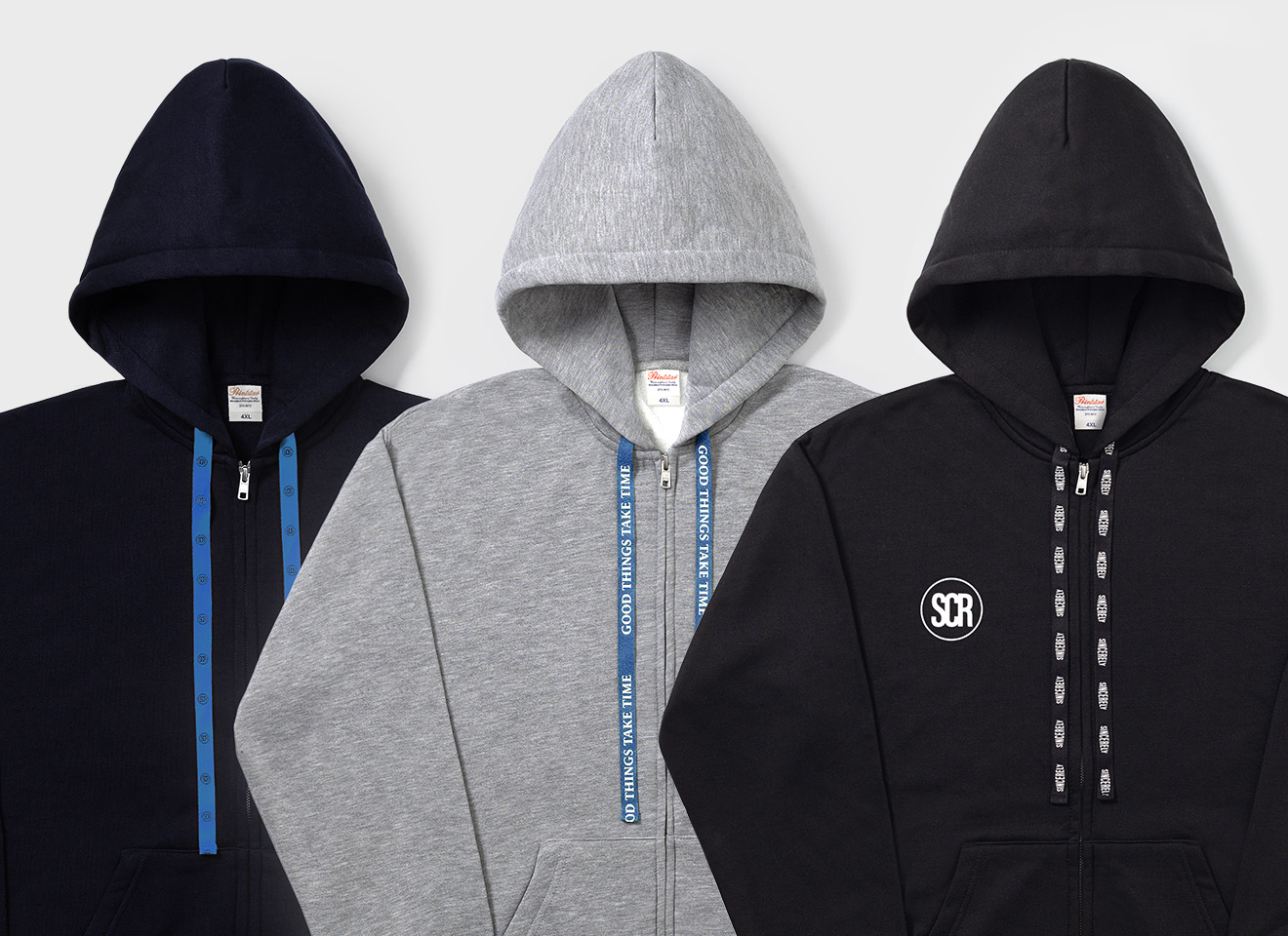 인쇄는 물론, 오직 신시어리에서만 볼 수 있는 후드 스트링으로 브랜딩을 더해보세요. 슬로건이 써져 있는 후드 스트링이 세련되면서도 유니크한 느낌을 전달합니다.